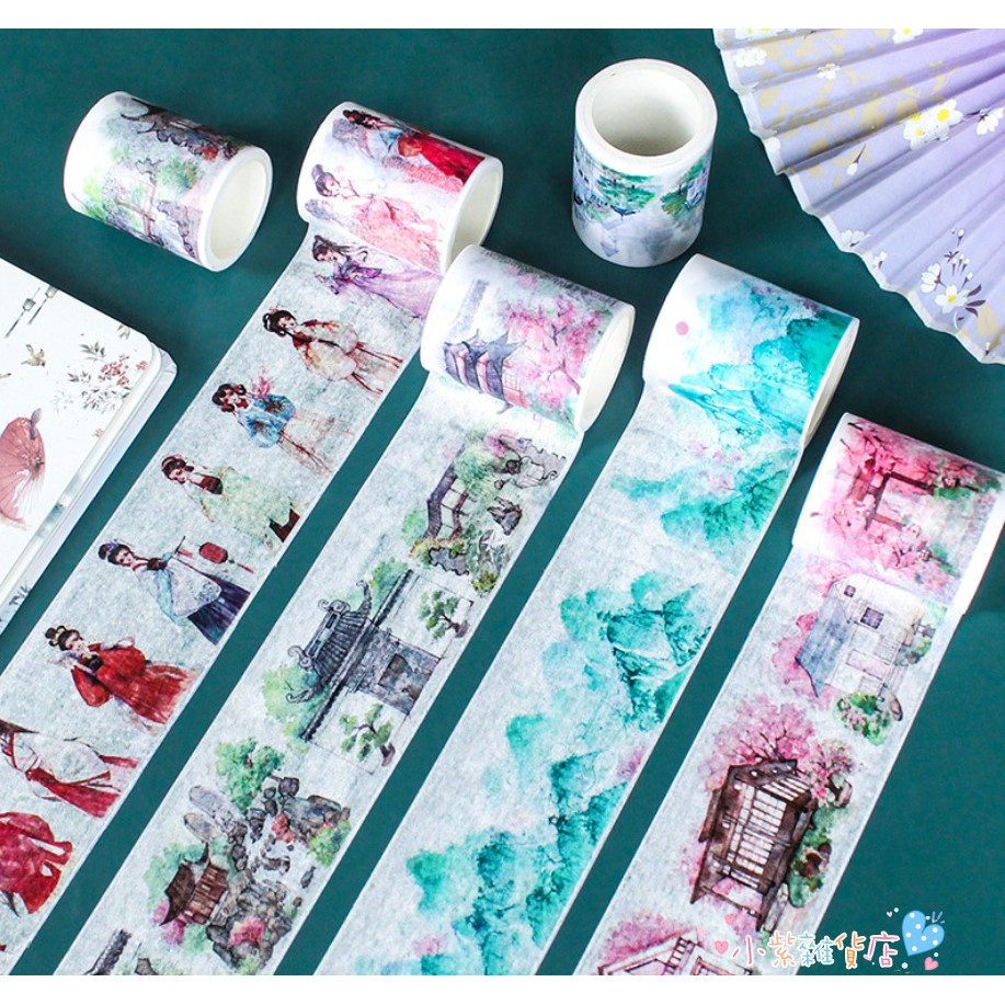 唯美古風人物 山水背景和紙膠帶 手帳紙膠帶🌸小紫雜貨店🌸